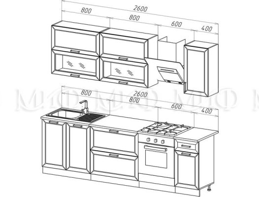 Кухонный гарнитур Монако 2,6 м (Миф)